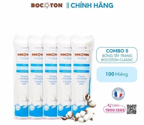 Combo 5 Bông tẩy trang Bocoton Classic 100 miếng là lựa chọn thông minh cho thói quen chăm sóc da đều đặn, nhẹ nhàng và tiết kiệm.