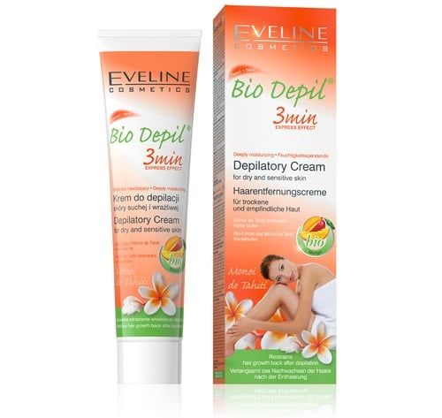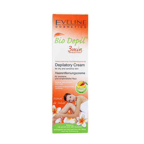 Với chiết xuất từ nguồn nguyên liệu sạch trong thiên nhiên, Kem tẩy lông Eveline Bio Depil 3 vùng hương xoài 125ML nhẹ nhàng tẩy sạch lông vùng chân, tay, nách và bikini, đồng thời tái tạo và dưỡng ẩm cho da suốt 24 tiếng. Chiết xuất xoài, bơ hạt mỡ và hoa Monoi de Tahiti giúp bảo vệ và dưỡng da trong suốt quá trình tẩy lông. Các hoạt chất trong kem nhanh chóng thẩm thấu sâu vào da, chỉ sau 3 phút loại bỏ hoàn toàn những đám lông gây mất thẩm mỹ, đồng thời ngăn ngừa lông mọc trở lại, phục hồi và duy trì làn da sạch mịn như lụa.