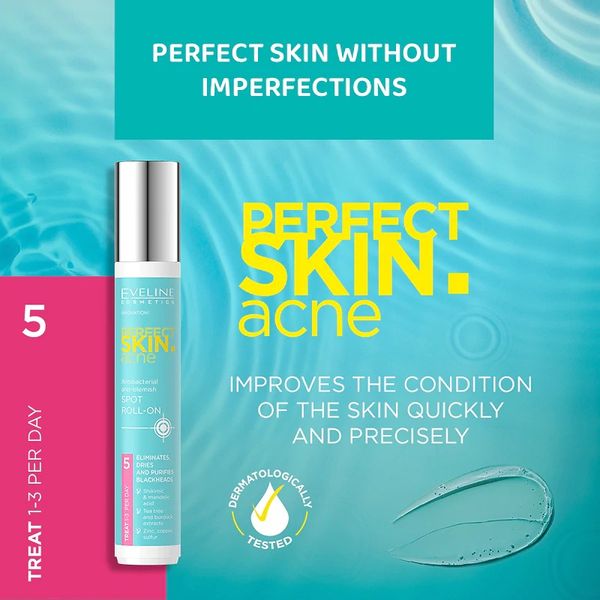 Lăn ngừa mụn Eveline Perfect Skin Acne được phát triển với công thức kháng khuẩn tiên tiến, giúp ức chế sự phát triển của vi khuẩn gây mụn. Nhờ đó, sản phẩm hỗ trợ làm giảm tình trạng viêm, sưng đỏ và cảm giác khó chịu trên da.