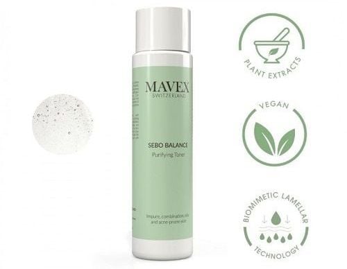 Nước cân bằng Mavex Sebo Balance là nước cân bằng không chứa cồn, có tác dụng se khít lỗ chân lông, tẩy tế bào chết nhẹ nhàng, thanh lọc và làm dịu da sau bước rửa mặt. Sản phẩm giúp loại bỏ hoàn toàn những cặn bẩn, bã nhờn còn sót lại mà sữa rửa mặt chưa làm sạch hết, từ đó hạn chế nguy cơ bít tắc lỗ chân lông – nguyên nhân chính gây mụn.