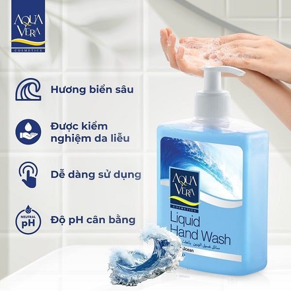 Bên cạnh khả năng làm sạch, AquaVera nước biển sâu còn hỗ trợ dưỡng ẩm cho da tay, giúp duy trì độ mềm mại tự nhiên. Sản phẩm giúp hạn chế cảm giác khô căng thường gặp khi sử dụng các loại nước rửa tay thông thường.