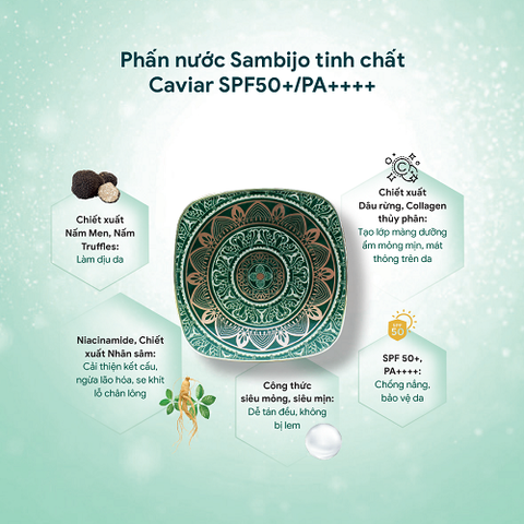 Phấn nước SAMBIJO siêu mịn tinh chất Caviar SPF50+/PA++++ 15g