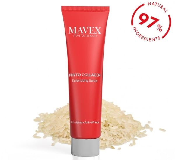 Tẩy tế bào chết Mavex Phyto Collagen giảm dấu hiệu lão hoá và nếp nhăn nhẹ nhàng loại bỏ tế bào chết, thanh lọc và làm mịn kết cấu da, hấp thụ bã nhờn dư thừa với những hạt gạo siêu nhỏ được lấy cảm hứng từ các nghi lễ cổ xưa của Nhật Bản, mang lại làn da sạch sẽ, mềm mướt, tươi sáng và cảm giác dễ chịu về độ ẩm mịn.
