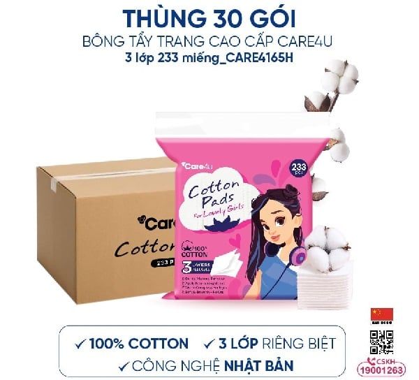 Thùng 30 gói bông tẩy trang cao cấp Care4u hồng 3 lớp 233 miếng là giải pháp kinh tế và hiệu quả cho nhu cầu sử dụng số lượng lớn. Với cotton tự nhiên, thiết kế 3 lớp bền chắc và chất lượng ổn định, sản phẩm đáp ứng tốt cả nhu cầu sử dụng chuyên nghiệp lẫn kinh doanh phân phối lâu dài.