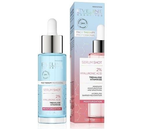 Tinh chất dưỡng da Eveline Serum Shot dưỡng ẩm Hyaluronic Acid 30ML là giải pháp cấp nước tức thì cho làn da khô, thiếu ẩm, giúp da căng mịn, mềm mại và khỏe mạnh hơn mỗi ngày. Với công thức giàu Hyaluronic Acid, sản phẩm hỗ trợ phục hồi hàng rào ẩm và duy trì độ ẩm lâu dài cho da.