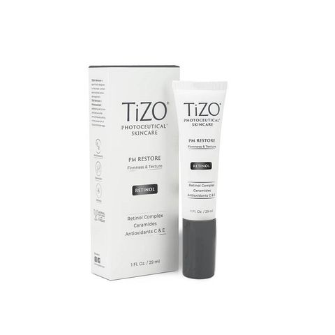 Tinh chất dưỡng da TiZO Photoceutical Skincare phục hồi da ban đêm 29ML giúp cải thiện rõ rệt các dấu hiệu lão hóa, giảm sự xuất hiện của nếp nhăn và vết chân chim với phức hợp Retinol mà không gây kích ứng. Sản phẩm đạt hiệu quả cao trong làm đều màu, dưỡng mềm mịn, đồng thời cải thiện độ săn chắc và kết cấu da.